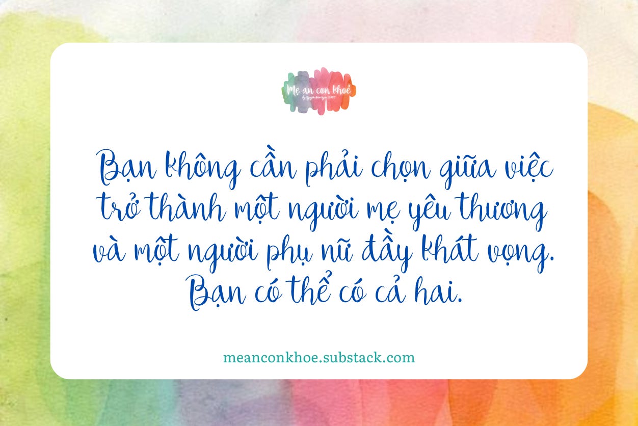 Hãy luôn nhớ rằng “Là Mẹ” và “Là Mình” không hề mâu thuẫn. Bạn không cần phải chọn giữa việc trở thành một người mẹ yêu thương và một người phụ nữ đầy khát vọng. Bạn có thể có cả hai.
