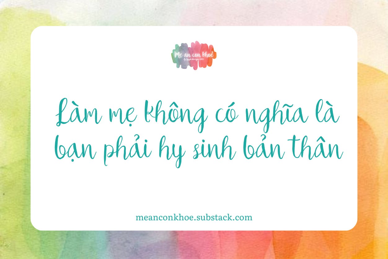 Làm mẹ không có nghĩa là bạn phải hy sinh bản thân. Bạn không phải chọn một trong hai "Là Mẹ" hay "Là Mình", mà bạn chính là cả hai.