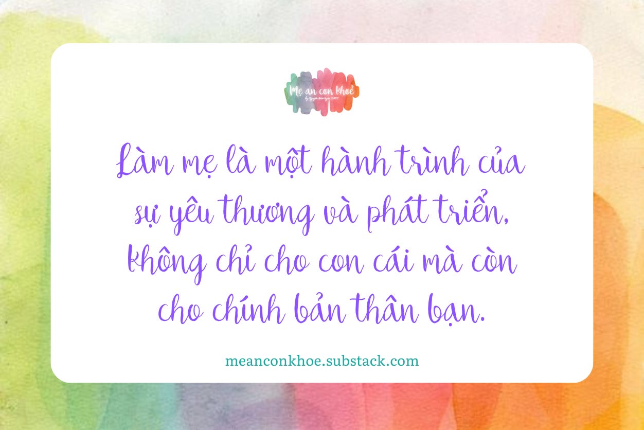 Làm mẹ là một hành trình của sự yêu thương và phát triển, không chỉ cho con cái mà còn cho chính bản thân bạn. Và hãy luôn nhớ rằng, bạn hoàn toàn xứng đáng với sự chữa lành và yêu thương sâu sắc mà bạn dành cho mình.